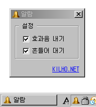 쉬지도 않고 컴퓨터에 앉아있는 현실을 보면서 만들게 되었습니다. 50분에 쉬는 종소리가 들리고 10분후 정각에 시작 소리가 들립니다. (학교 종소리 ^^) 프로그램 실행시 트레이아이콘에만 출력되면 트레이아이콘을 통해 설정 및 종료를 할 수 있습니다. 다운로드 음향효과는 http://zapcucu.tistory.com/16 에서 공개한 것을 사용하였습니다. [주의] - 본 프로그램은 완전 공짜이며 맘대로 퍼트려도 됩니다. - 설치과정이 없으며, 압축 풀고 사용하시면 됩니다. - 삭제시 종료후 압축 푸신...