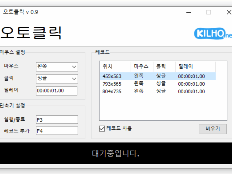 오토클릭(1.4.9) 가 업데이트되었습니다. 마우스 자동 클릭 프로그램입니다. 시간, 좌표를 추가하여 여러 패턴으로 사용할 수 있습니다. 클릭에 대한 세부 지정을 할 수 있습니다. 설치 없이 사용 가능합니다. 홈페이지 오토클릭 : https://autoclick.kilho.net 히스토리버전 1.4.9 (2026/02/20)- 레코드 파일을 불러오지 못하는 경우 발생하던 문제 개선버전 1.4.8 (2026/01/26)- 특정 상황에서 장시간 사용 중 발생할 수 있던 안정성 문제 개선- 일부 환경에서 파일...