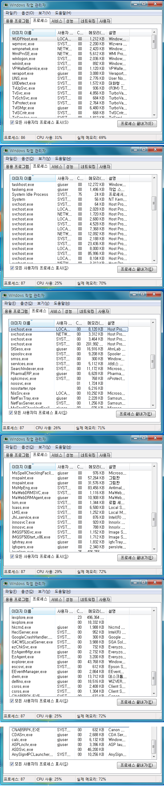 혹시 몰라서 프로세서 캡쳐해서 올려봅니다..