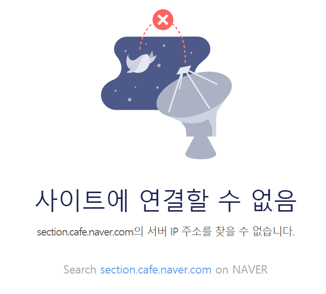 사진처럼 어떤 홈페이지도 저렇게 DNS 혹은 IP를 못찾는다고 오류가 뜨는데요