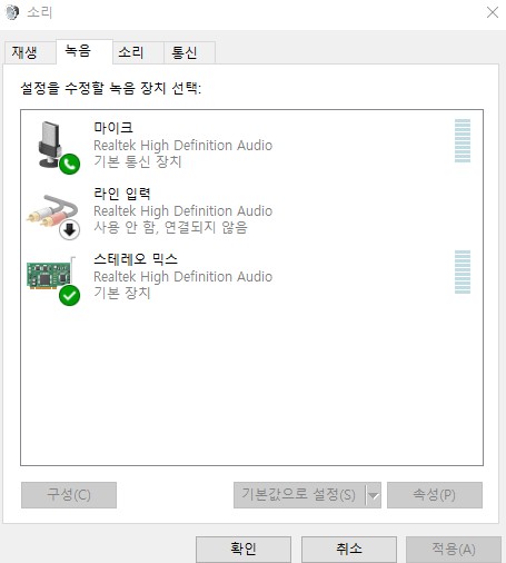 녹화 하는데 소리가 안 나길래 검색해서 ffmepg도 최신으로 설치하고 칼무리도 최신버전으로 다시 설치하고 스테레오 믹스도 기본으로 해놨습니다 근데 소리 포함 녹화를 하면 녹화시간이 잠깐 나왔다가 사라지고 녹화가 안 되네요 소리를 끄거나 녹음 쪽 장치를 아무것도 사용안함으로 하면 역시 녹화는 되지만 소리가 안 나고....어떻게 해야 할지를 모르겠습니다