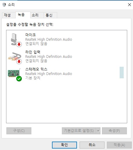 알려주신대로 녹음에 스테레오 믹스로 바꾸고 했는데도 안되네요.
