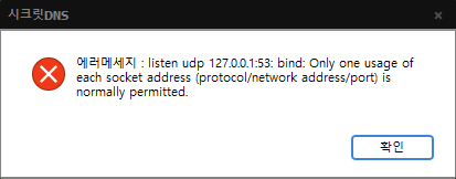 시크릿 DNS 실행 시 에러메시지가 뜹니다.