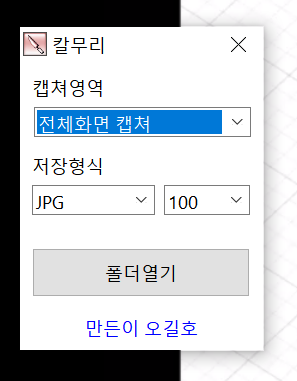 칼무리가 띄워져 있어야만 캡쳐가 됩니다...