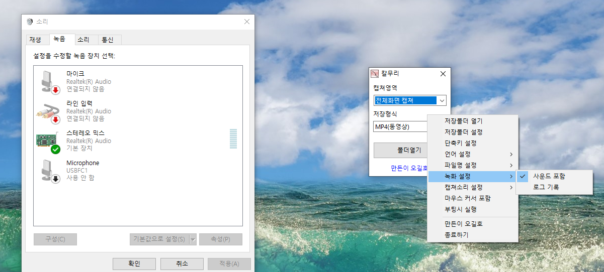 마이크 소리만 녹음 되길래 마이크 설정 해제하고 사운드카드로 설정 해 놨고 칼무리는 소리 포함으로 설정 해 놨는데도 소리녹음이 안됩니다 이런경우 어떻게 해야 할까요?