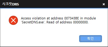 • 부팅시 오류 발생이 되면 SecretDNS 를 종료하고 다시 실행해보시겠습니까?