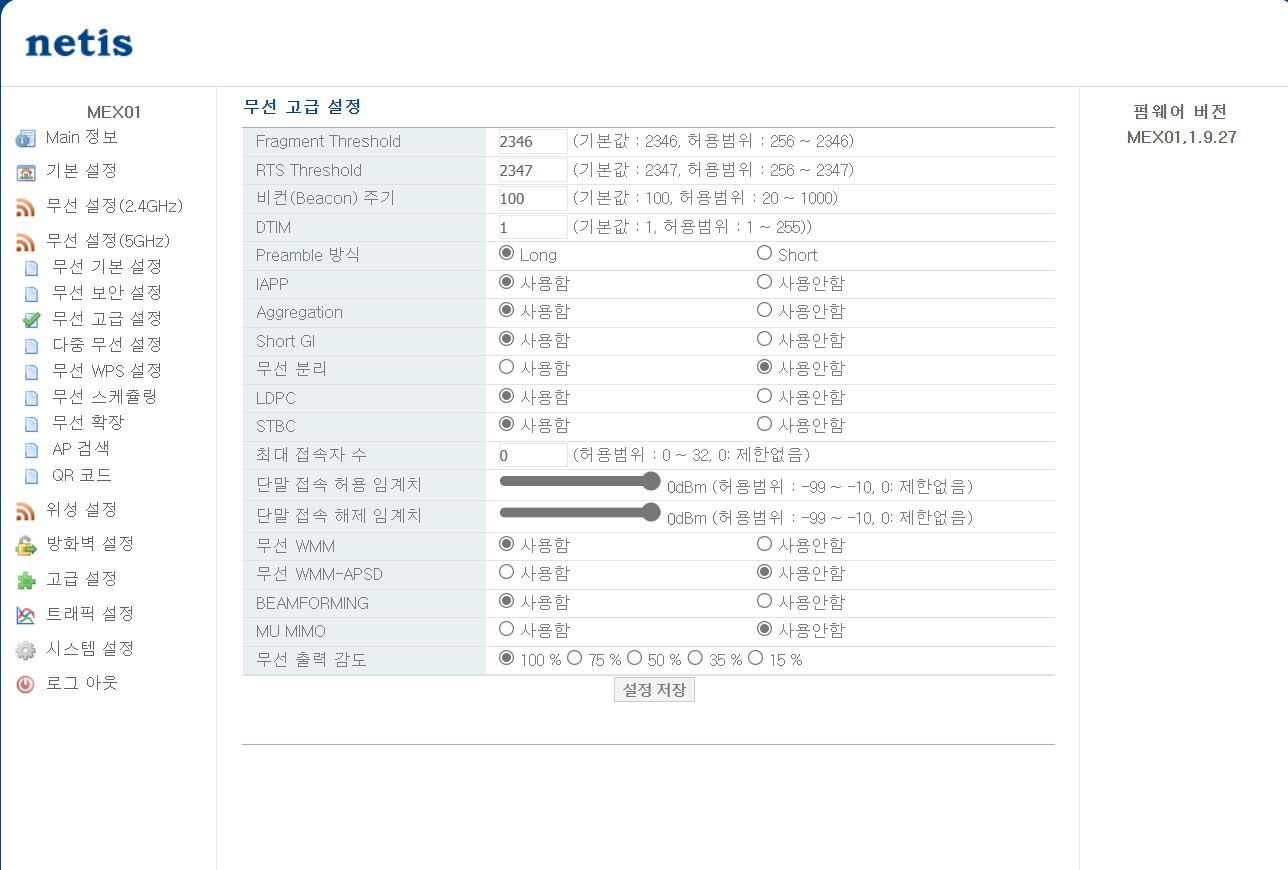 netis 공유기 관련 설명글(아래 링크)을 유추해 봤을때 Aggregation 을 사용안함으로 설정해 보시겠습니까?