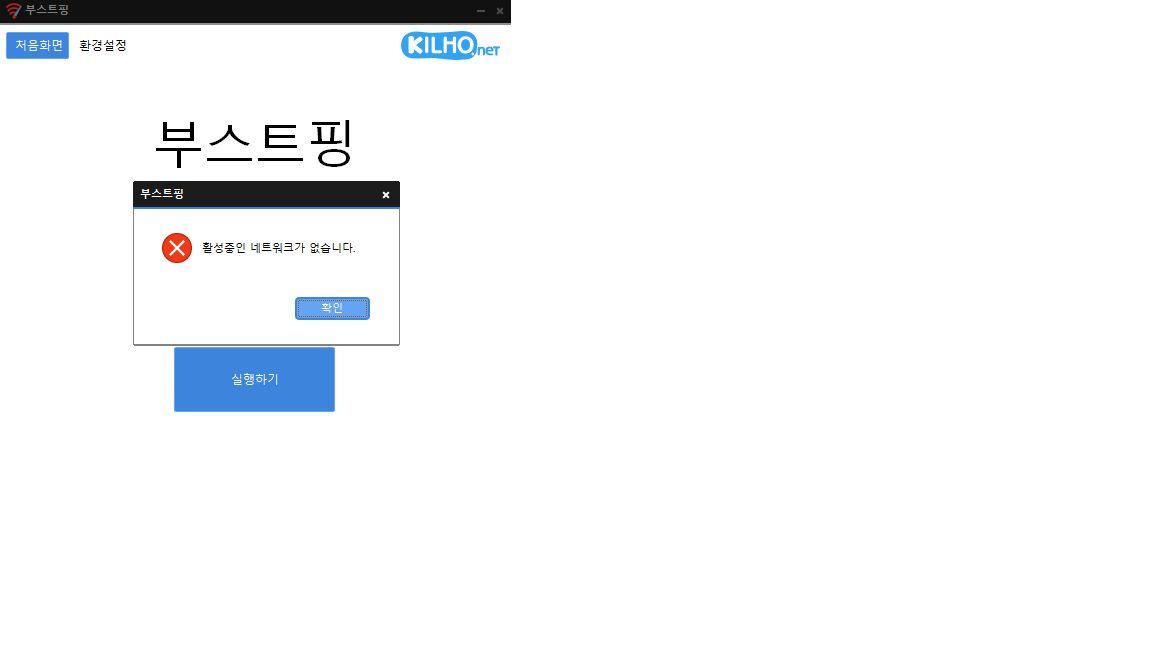 활성중인 네트워크가 없다고 뜨며 실행 자체가 되지 않는 문제점이 있습니다.