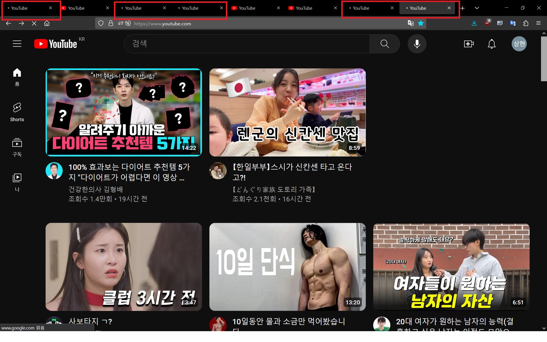 유튜브 탭을 열면 무한 로딩이 걸려버리네요