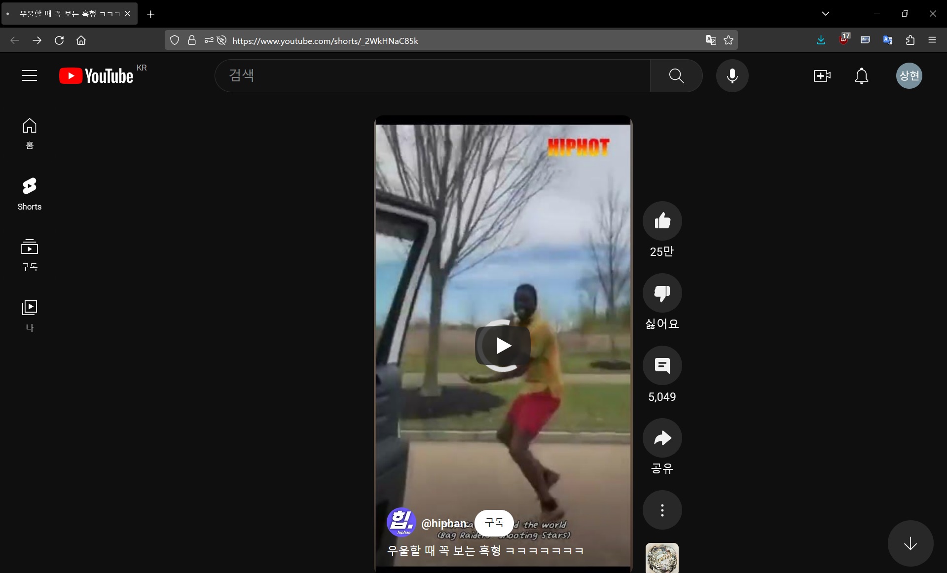시크릿DNS 실행 후 로딩 걸린 유튜브 탭에서 영상을 재생 하면