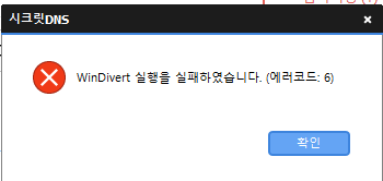 • 해당 에러는 시크릿DNS이 WinDivert 드라이버를 실행하지 못했을 때 발생하는 문제입니다.
