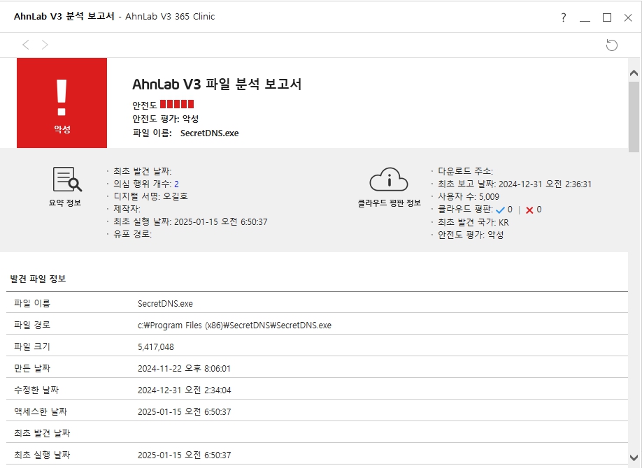 시크릿DNS가 V3 백신에서 악성코드로 잡히네요. 2 25-01-15