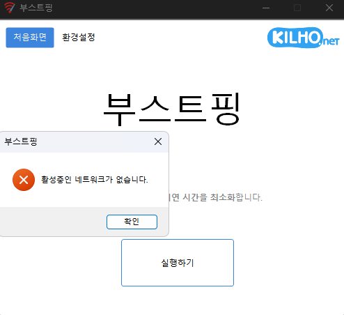 부스트핑 네트워크 아답터를 잡지 못합니다