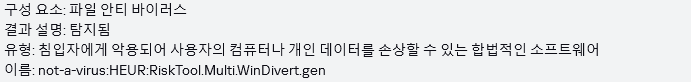 현재 발생하는 경고는 WinDivert 라이브러리를 사용하고 있기 때문에 나타나는 현상입니다.
