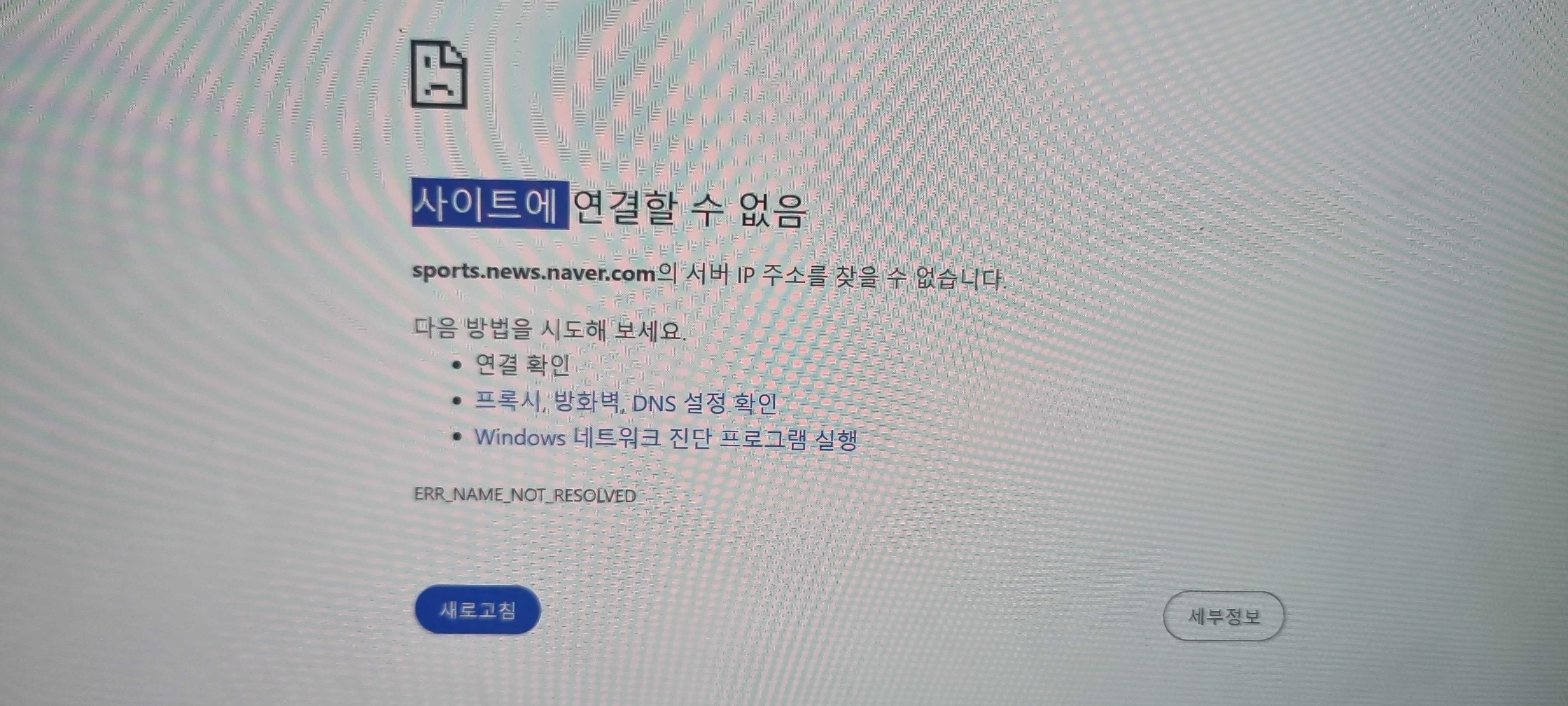 • DNS 서버에서 해당 주소를 찾지 못한 경우로 보입니다.