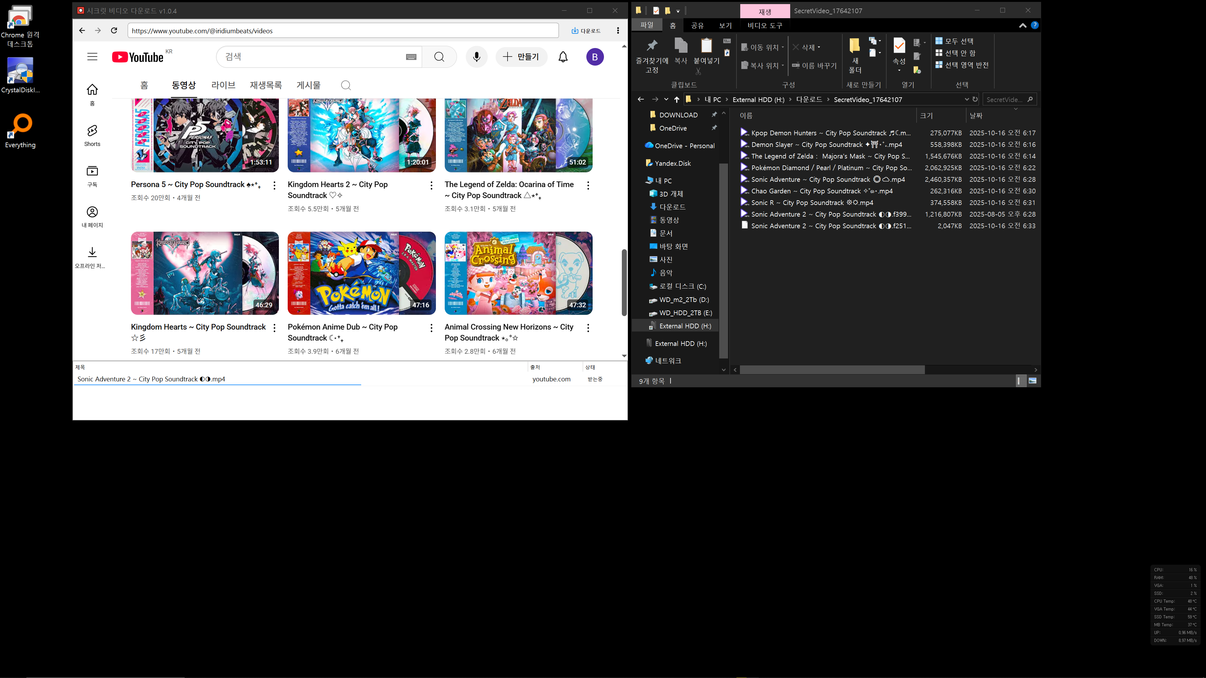 채널 일괄 내려받기를 하면 당연히 하나의 임시폴더만 생성되는데, 채널 내 영상이 순차적으로 내려받기를 시작하고,