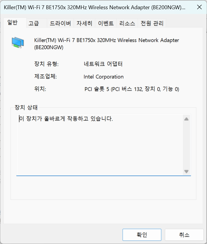- 랜카드: [Killer(TM) Wi-Fi 7 BE1750x 320MHz Wireless Network Adapter (BE200NGW)]