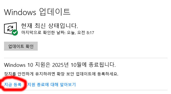 참고: “지금 등록” 버튼이 나타나지 않는다면, 윈도우 10 최신 업데이트가 설치되어 있는지 확인하세요.